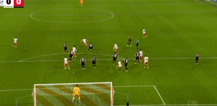 第53分鐘,勞姆定位球傳中,奧爾班頭球破門!萊比錫1-0弗賴堡