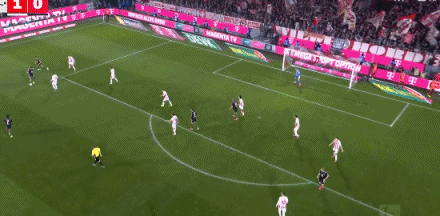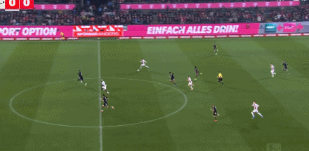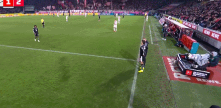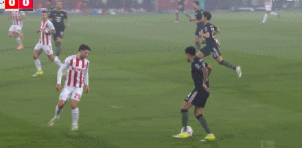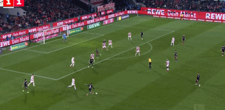 第41分鐘,格納布里失誤被斷,馬伊納帶球反擊遠(yuǎn)射破門!科隆1-0拜仁