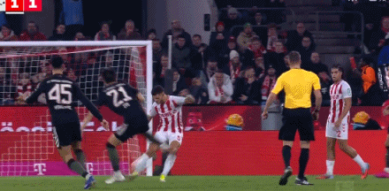 第71分鐘,反超!伊藤洋輝底線頭球回做,金玟哉頭球接力入網(wǎng),拜仁2-1