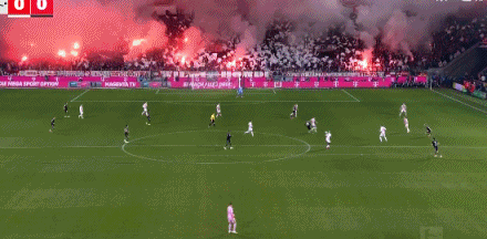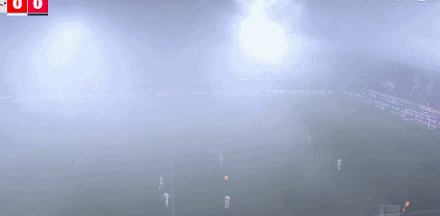 第4分鐘,球迷燃放煙火影響視線,比賽短暫暫停