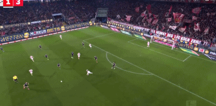第84分鐘,凱恩后場長傳,迪亞斯橫傳助攻卡爾低射破門!科隆1-3拜仁