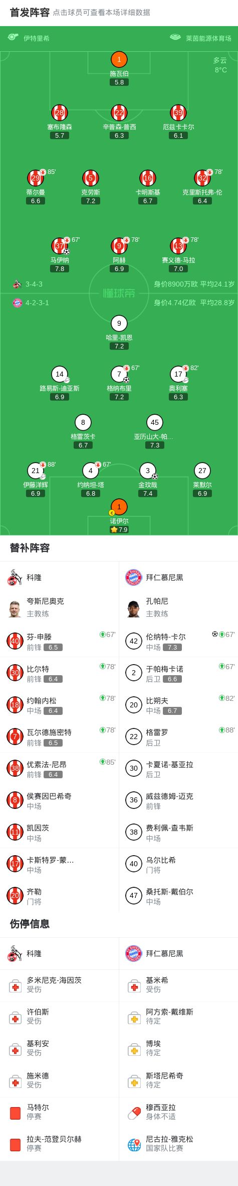 - 科隆vs拜仁:卡明斯基、克勞斯首發(fā),哈里-凱恩、諾伊爾出戰(zhàn)