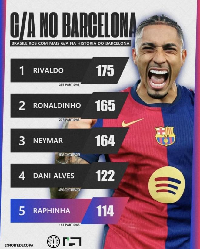- 巴塞羅那隊史巴西球員進球+助攻排行榜發(fā)布!第四名竟然是后衛(wèi)?