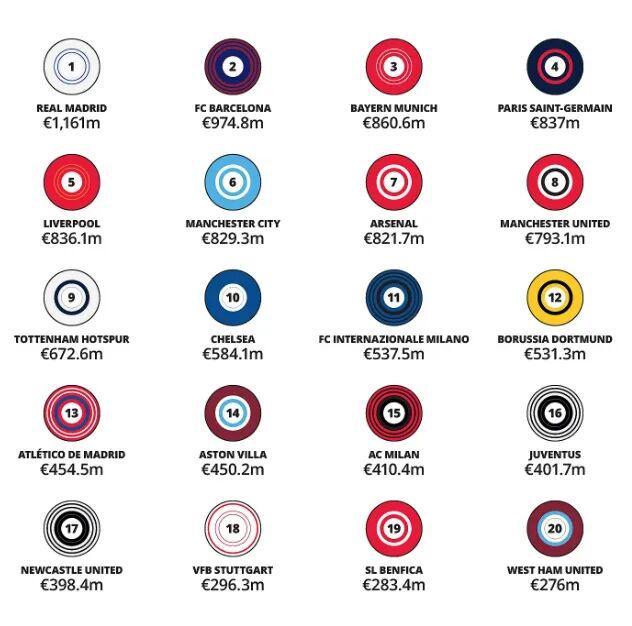 國際會(huì)計(jì)事務(wù)所德勤發(fā)布24/25賽季足球俱樂部收入報(bào)告。