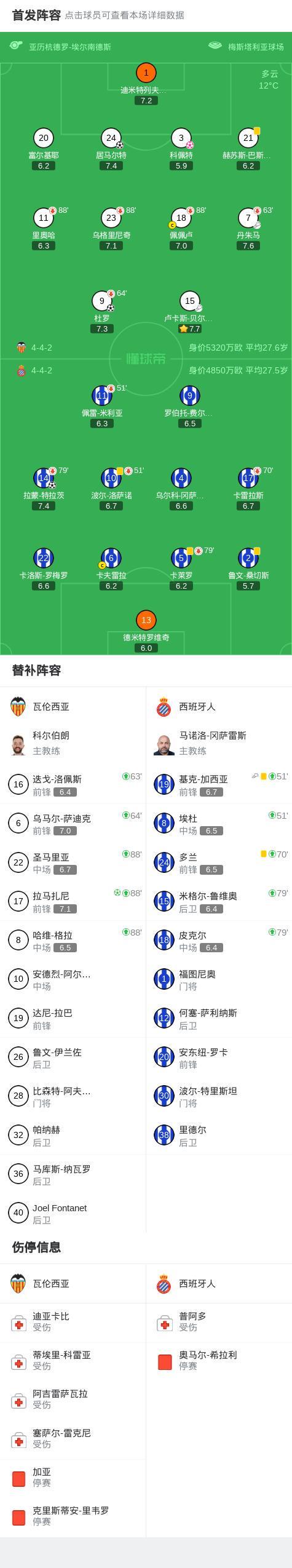 - 瓦倫西亞3-2西班牙人,拉馬扎尼點(diǎn)射,居馬爾特破門
