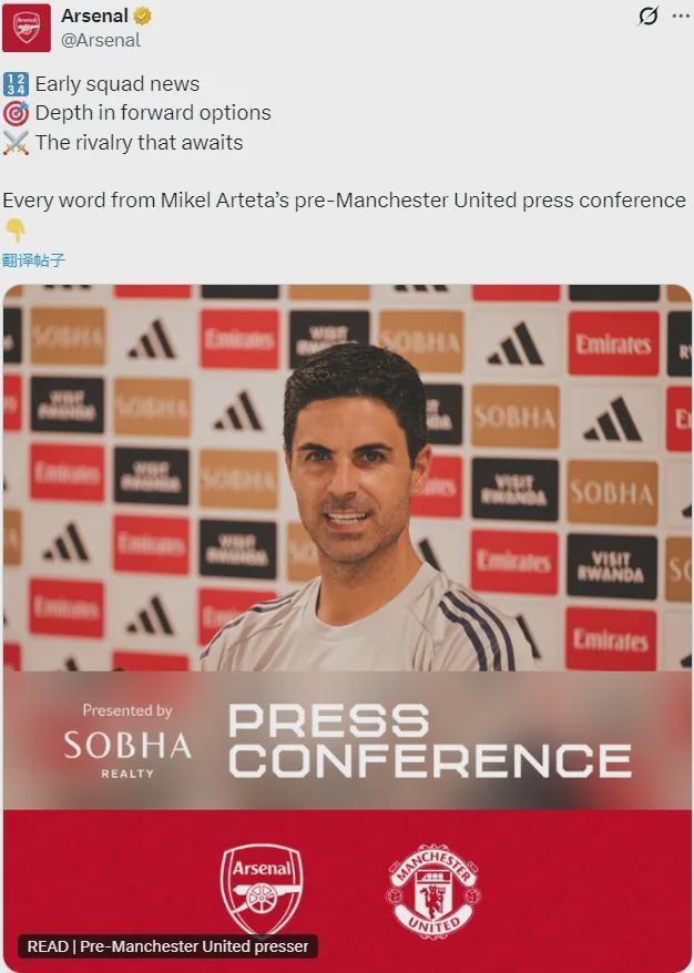 阿爾特塔出席了賽前新聞發(fā)布會,我們來看看阿森納主帥的發(fā)言。