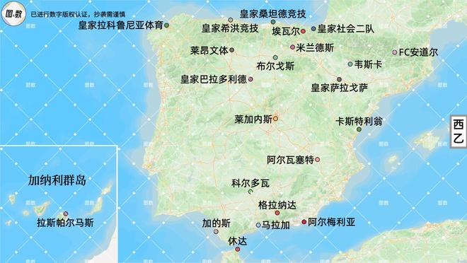 加納利群島大加納利島的拉斯帕爾馬斯不僅是位置最南的西乙球隊,而且是整個西班牙前四級別聯(lián)賽里位置最南的球隊,同在加納利群島、但地處特內(nèi)里費島的特內(nèi)里費處在拉斯帕爾馬斯以北,目前參加西協(xié)甲,關(guān)于這兩支海島球隊,詳見此前發(fā)布的加納利群島專題。