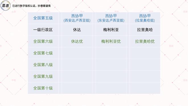 西協(xié)甲分設(shè)西北和東南二區(qū);西協(xié)乙則分設(shè)五組:西北組、正北組、東北組、東中組和南組,每組均為18隊(duì),共90隊(duì);西協(xié)丙進(jìn)一步增加平行分組至十八組,人口最多的安達(dá)盧西亞自治區(qū)設(shè)有二組,西安達(dá)盧西亞包含休達(dá),東安達(dá)盧西亞包含梅利利亞,而其余十六個(gè)自治區(qū)各設(shè)一組,每組均為18隊(duì),十八組總計(jì)是324隊(duì)。